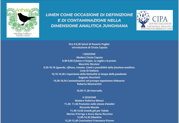 07/12/2021Parteciperò con una riflessione su “Prometeo nella stanza dell’analisi” giorno sabato 27 Novembre h 9.00 – 13.00 all’interessante giornata online su “Limen nella dimensione analitica” organizzata da Antheia e CIPA Meridionale.